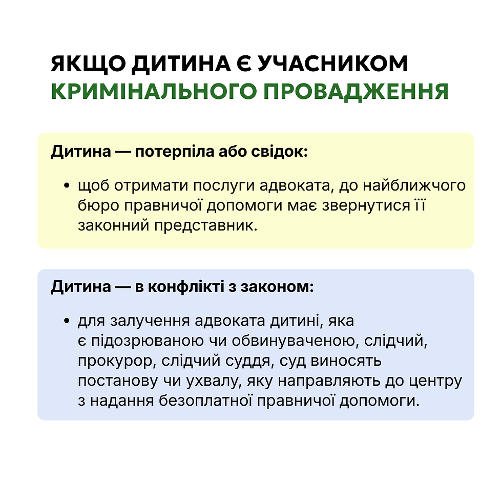 Кожна дитина має право на безоплатну правничу допомогу — від консультацій до представництва інтересів, зокрема у суді. Отримати ці послуги можна від системи надання безоплатної правничої допомоги (БПД).